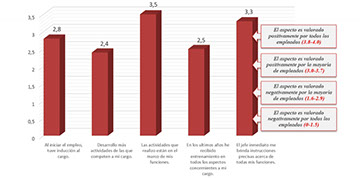 Como se puede observar, el análisis de los resultados no se limita a presentar las Dimensiones en su promedio sino que muestra la valoración de cada una de las características de una determinada dimensión cruzada con la variables(s) sociodemográficas que el cliente defina, lo cual es la entrada principal para los Planes de Mejoramiento, que este caso se focalizan a los empleados que tengan una “percepción negativa” de lo valorado.